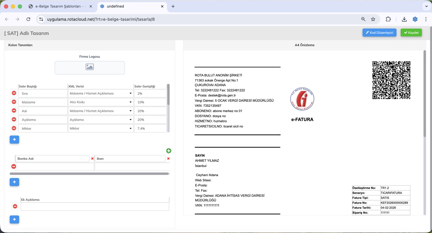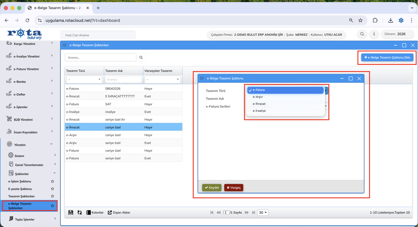 Bu güncelleme ile birlikte, e-belge tasarımlarınızı kolayca oluşturabilir ve sisteminize ekleyebilirsiniz.
