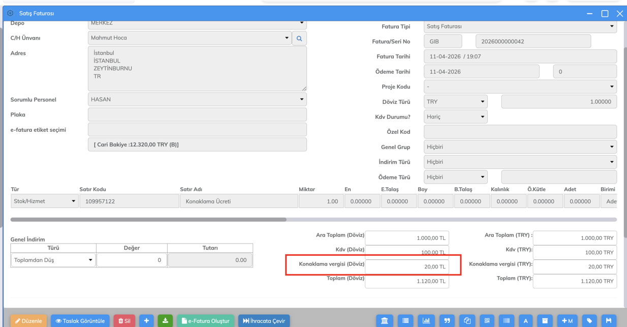 Kullanıcılar, bu alandan konaklama vergisine ilişkin gerekli tanımlamaları gerçekleştirerek süreci aktif hale getirebilir.