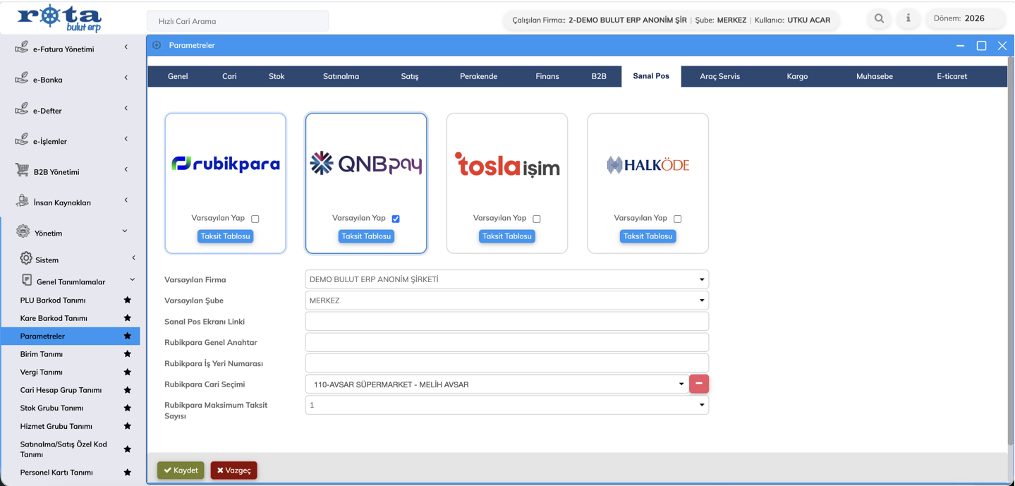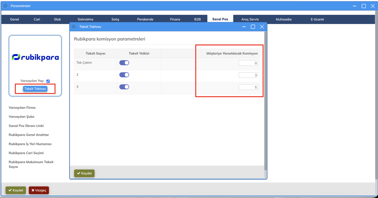 Bu güncelleme ile birlikte, Sanal POS ekranlarında taksitli ödeme seçeneği kullanılabilir hale gelmiştir.