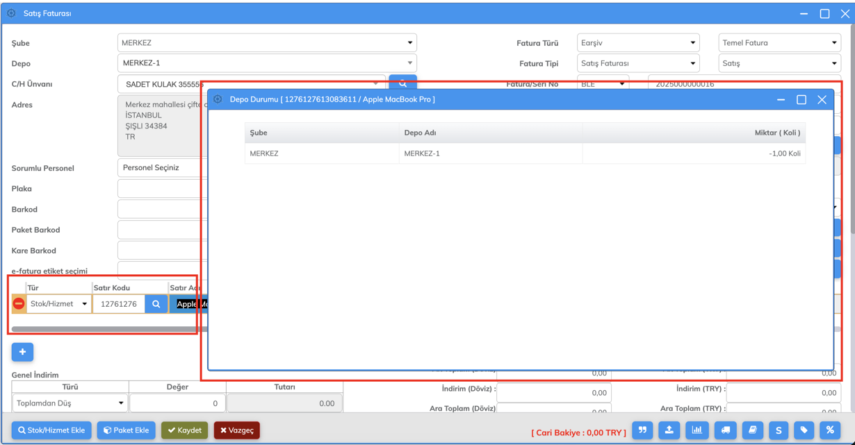 Yeni eklenen bu özellik, belge satırları üzerinden stok–depo ilişkisinin daha kolay kontrol edilmesini sağlayarak işlem güvenliğini ve kullanıcı verimliliğini artırır.