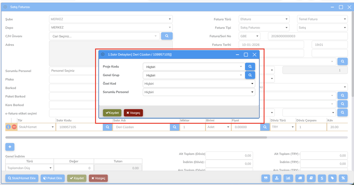 Satış ve Satınalma Belgelerinde Satır Bazlı Alan Seçimi Geliştirildi